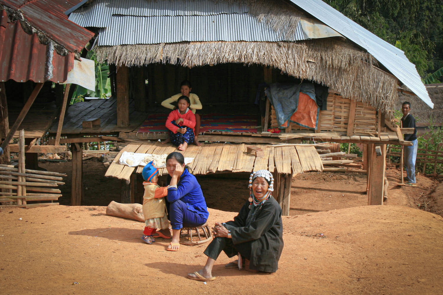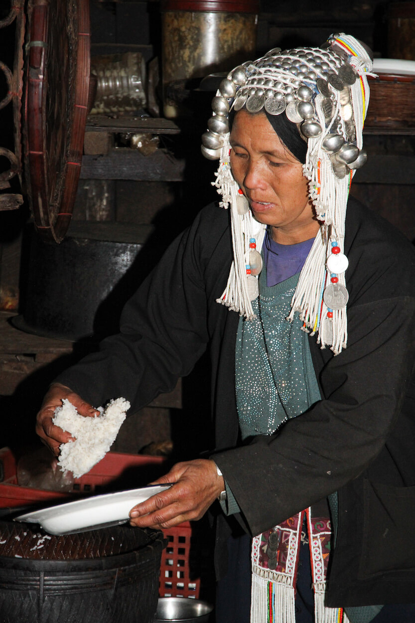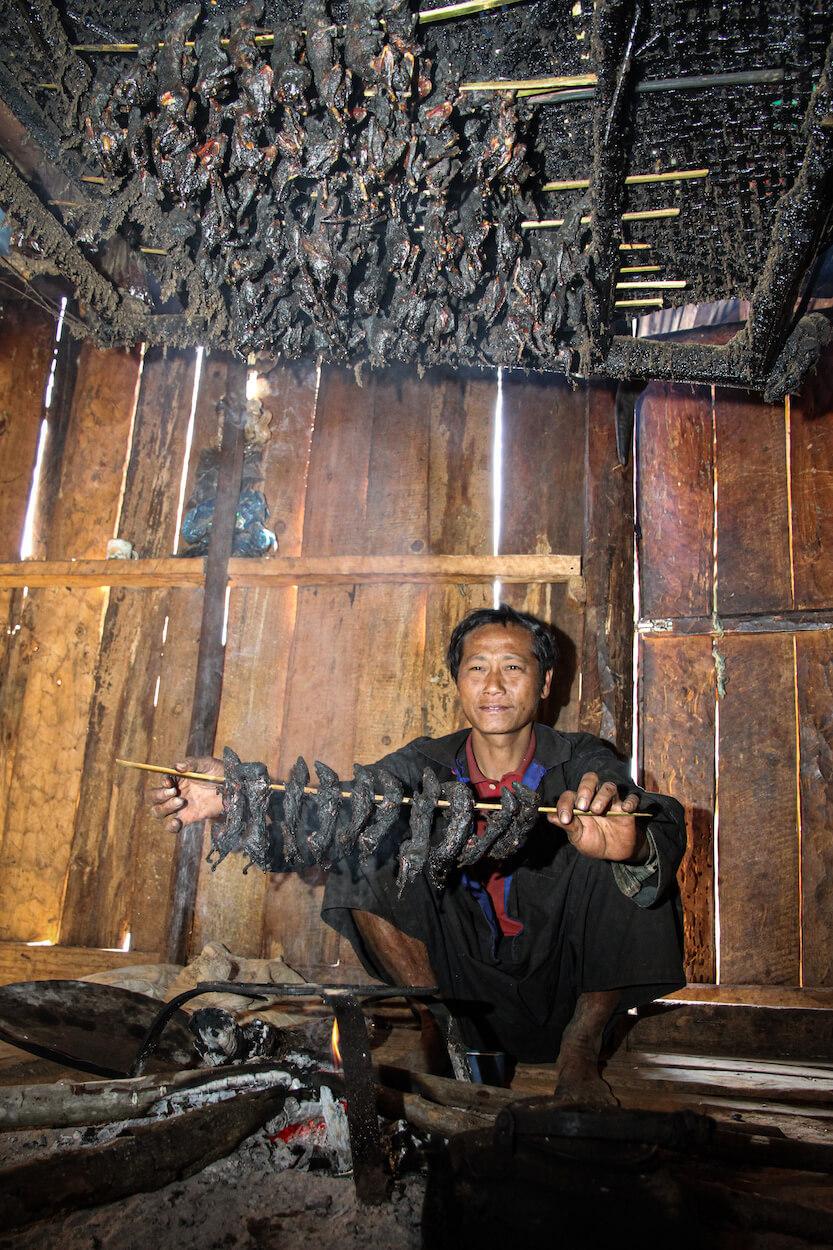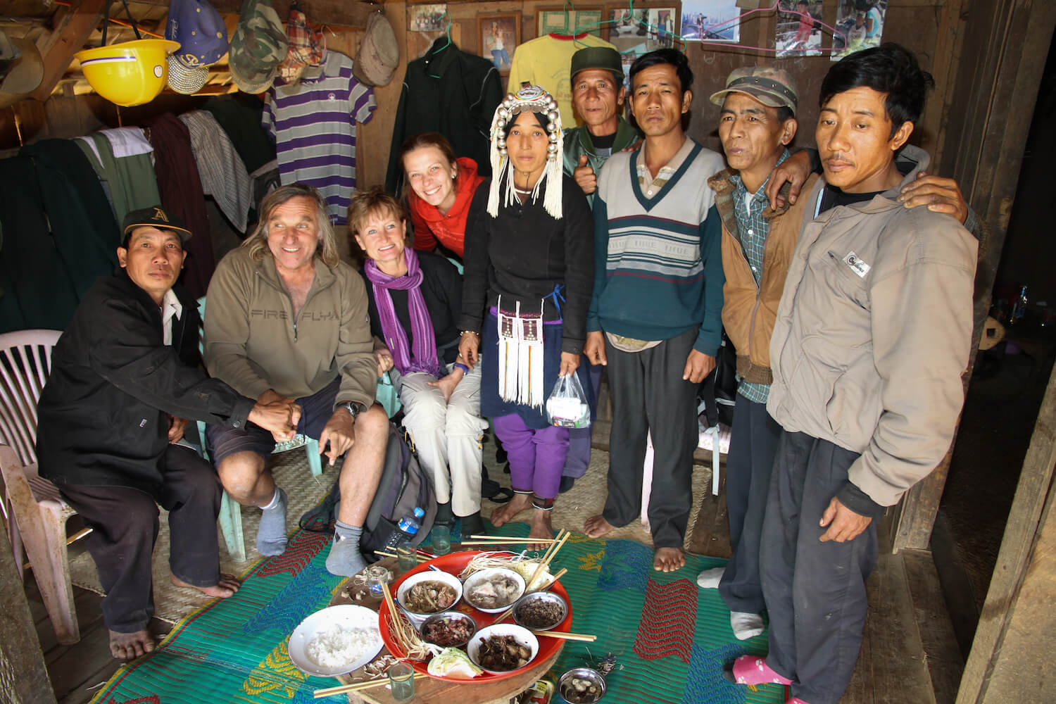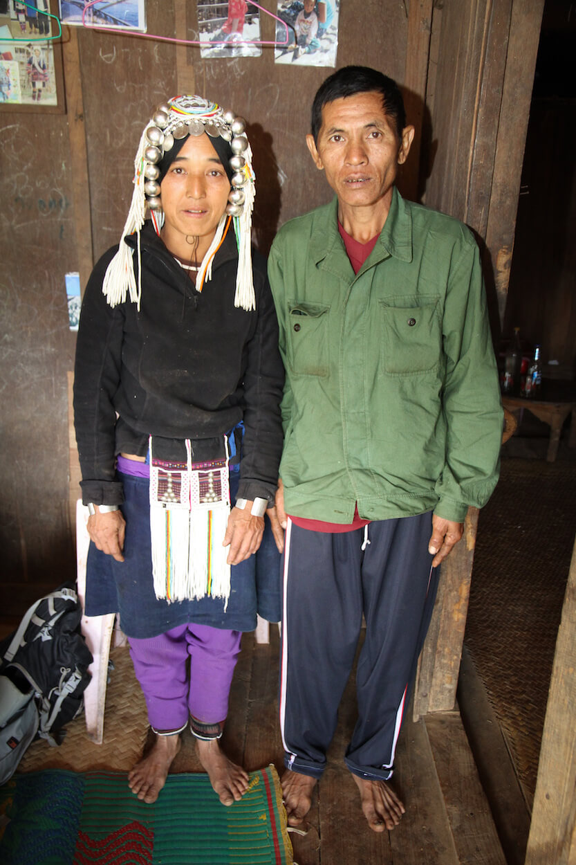 S lidmi Akha se potkáváme ve východní Barmě v oblasti Kengtungu. Postupně navštěvujeme tři vesnice: Wanping, Wanla a Fa Kuo. Procházíme vstupní branou a stáváme se středem pozornosti. Zrovna probíhají oslavy, tak všichni pijí a hodují od ranních hodin. Nemine to ani nás. Těžko hledáme argumenty, proč musíme odmítnout a brzy už mezi námi koluje místní rýžová pálenka. Zvou na ke stolu a dáváme si rýži a vepřové maso na mnoho způsobů. Potom nás vedou do domu, který má dvě části. V mužské sekci se seznamujeme s bratrem starosty a ve vedlejší místnosti nás vítá jeho manželka. Ochutnáváme uzené veverky a jdeme k dalšímu domku.