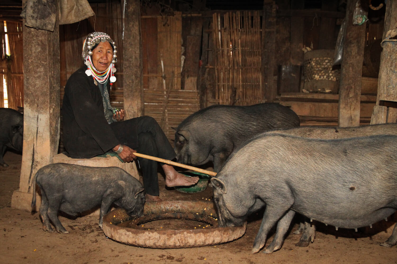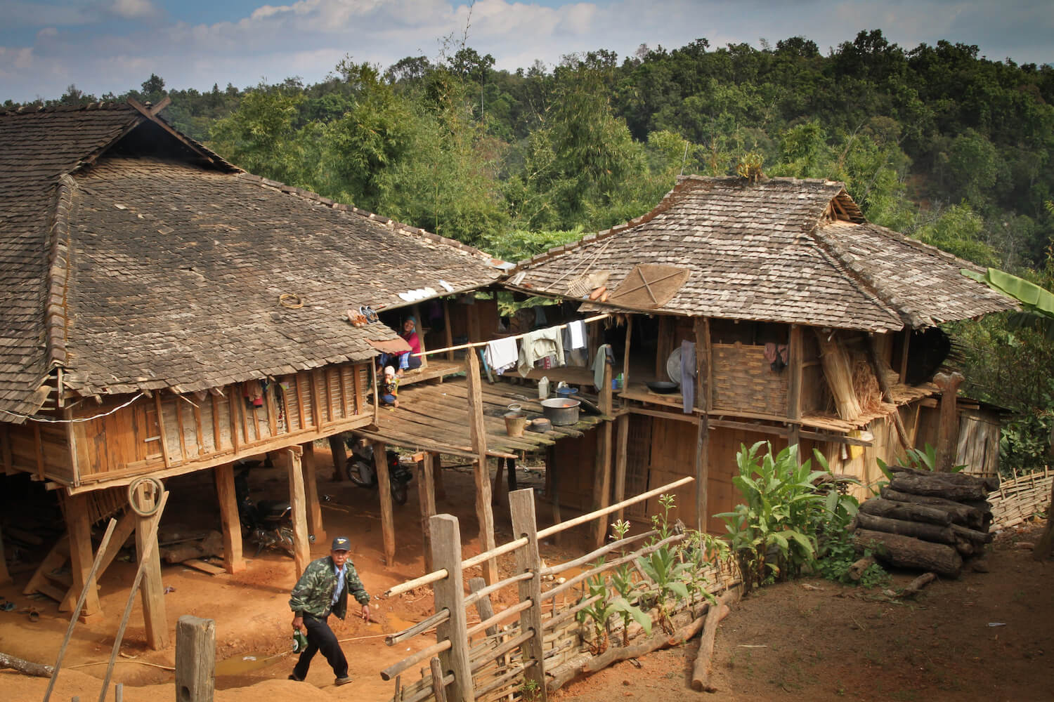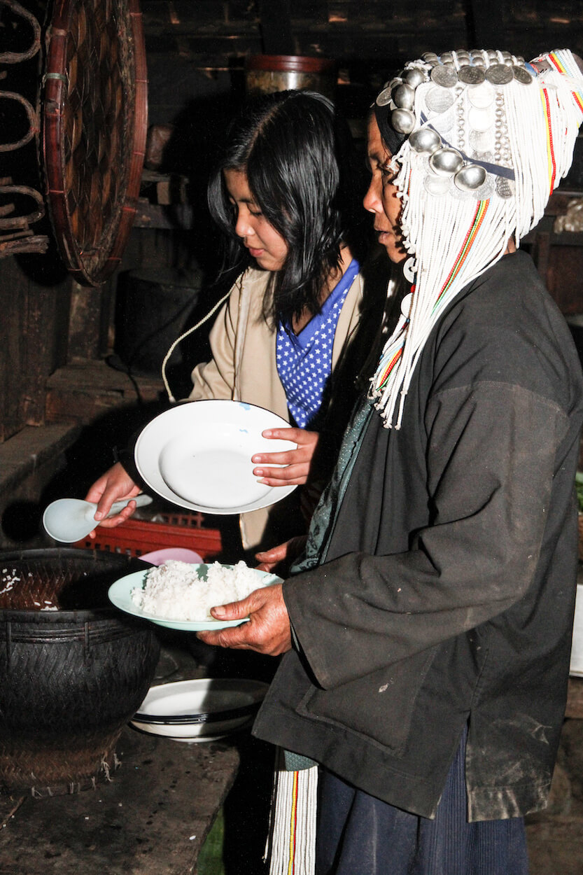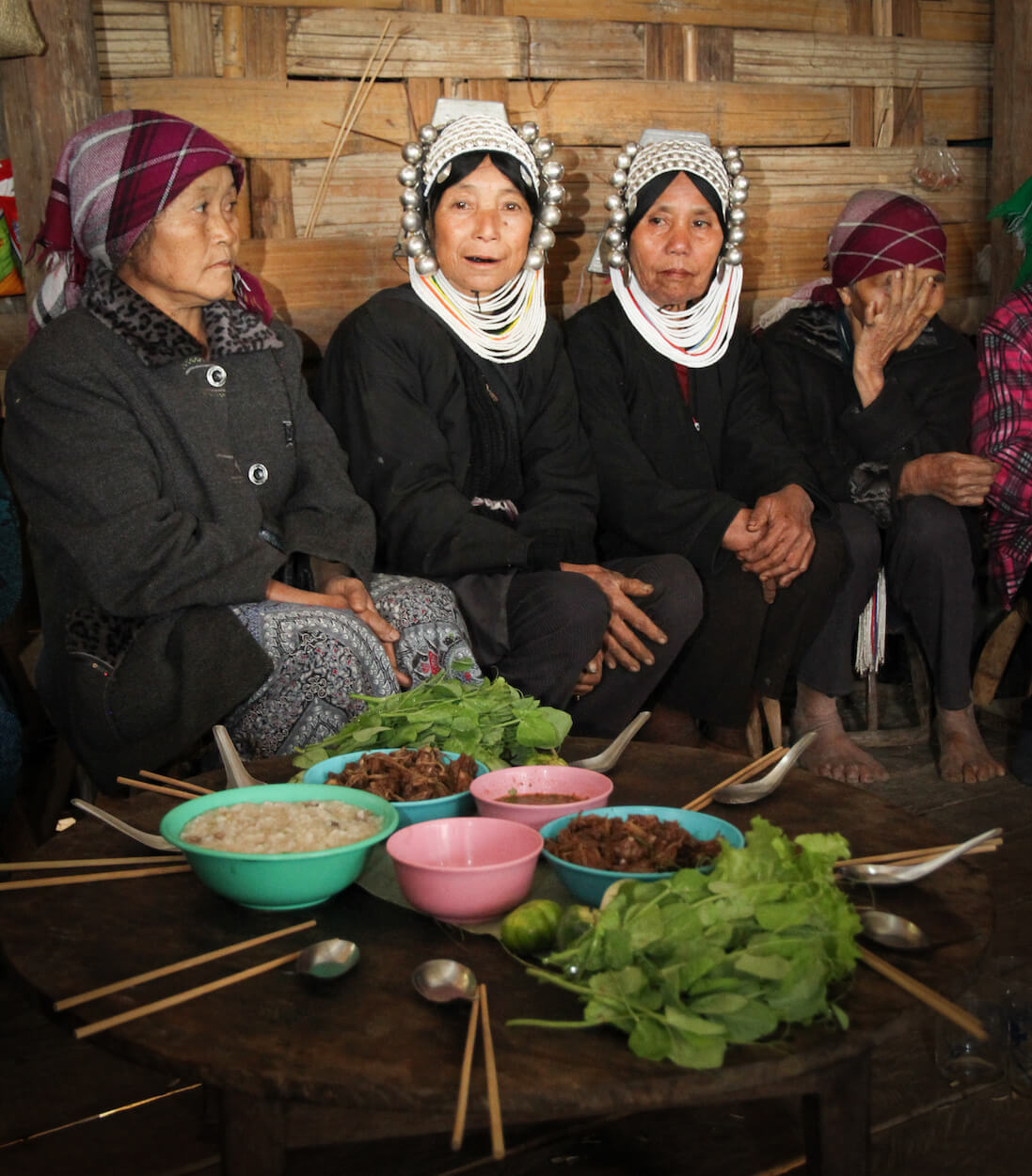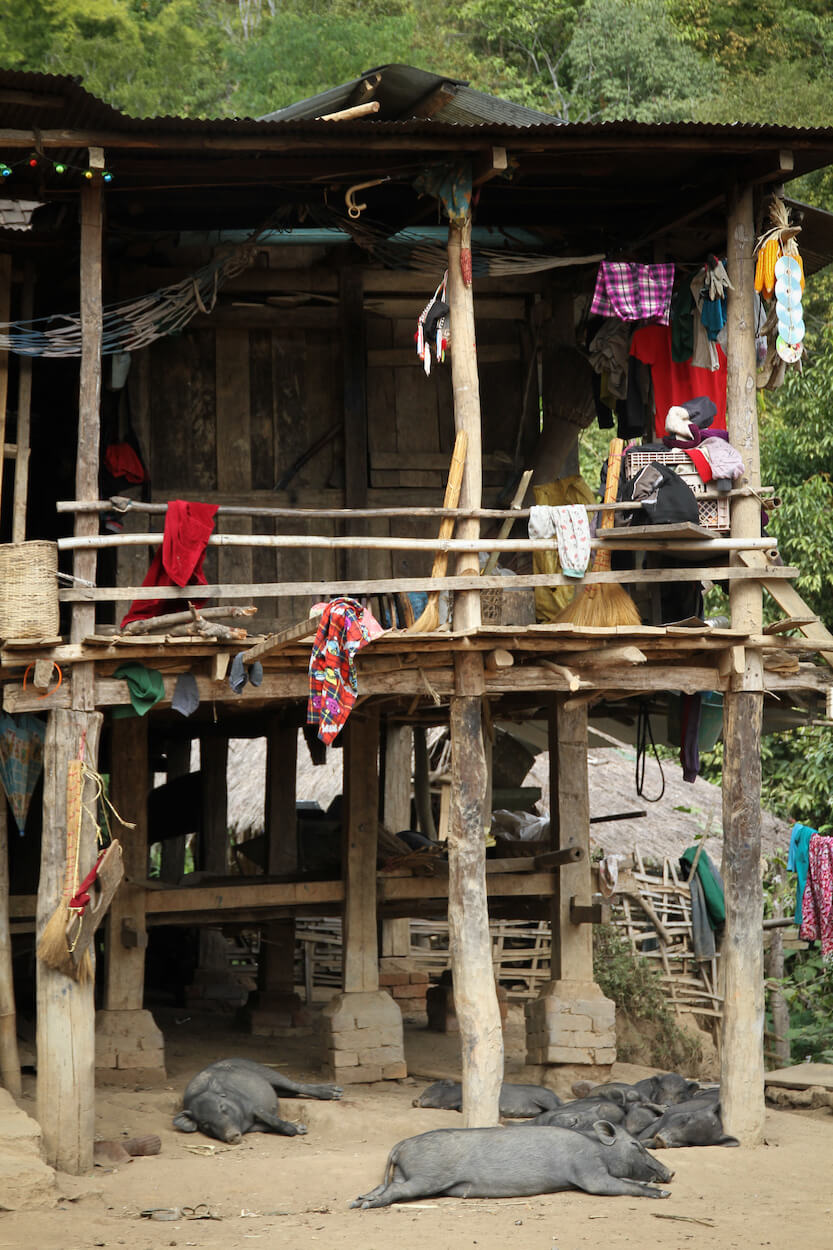 S lidmi Akha se potkáváme ve východní Barmě v oblasti Kengtungu. Postupně navštěvujeme tři vesnice: Wanping, Wanla a Fa Kuo. Procházíme vstupní branou a stáváme se středem pozornosti. Zrovna probíhají oslavy, tak všichni pijí a hodují od ranních hodin. Nemine to ani nás. Těžko hledáme argumenty, proč musíme odmítnout a brzy už mezi námi koluje místní rýžová pálenka. Zvou na ke stolu a dáváme si rýži a vepřové maso na mnoho způsobů. Potom nás vedou do domu, který má dvě části. V mužské sekci se seznamujeme s bratrem starosty a ve vedlejší místnosti nás vítá jeho manželka. Ochutnáváme uzené veverky a jdeme k dalšímu domku.
