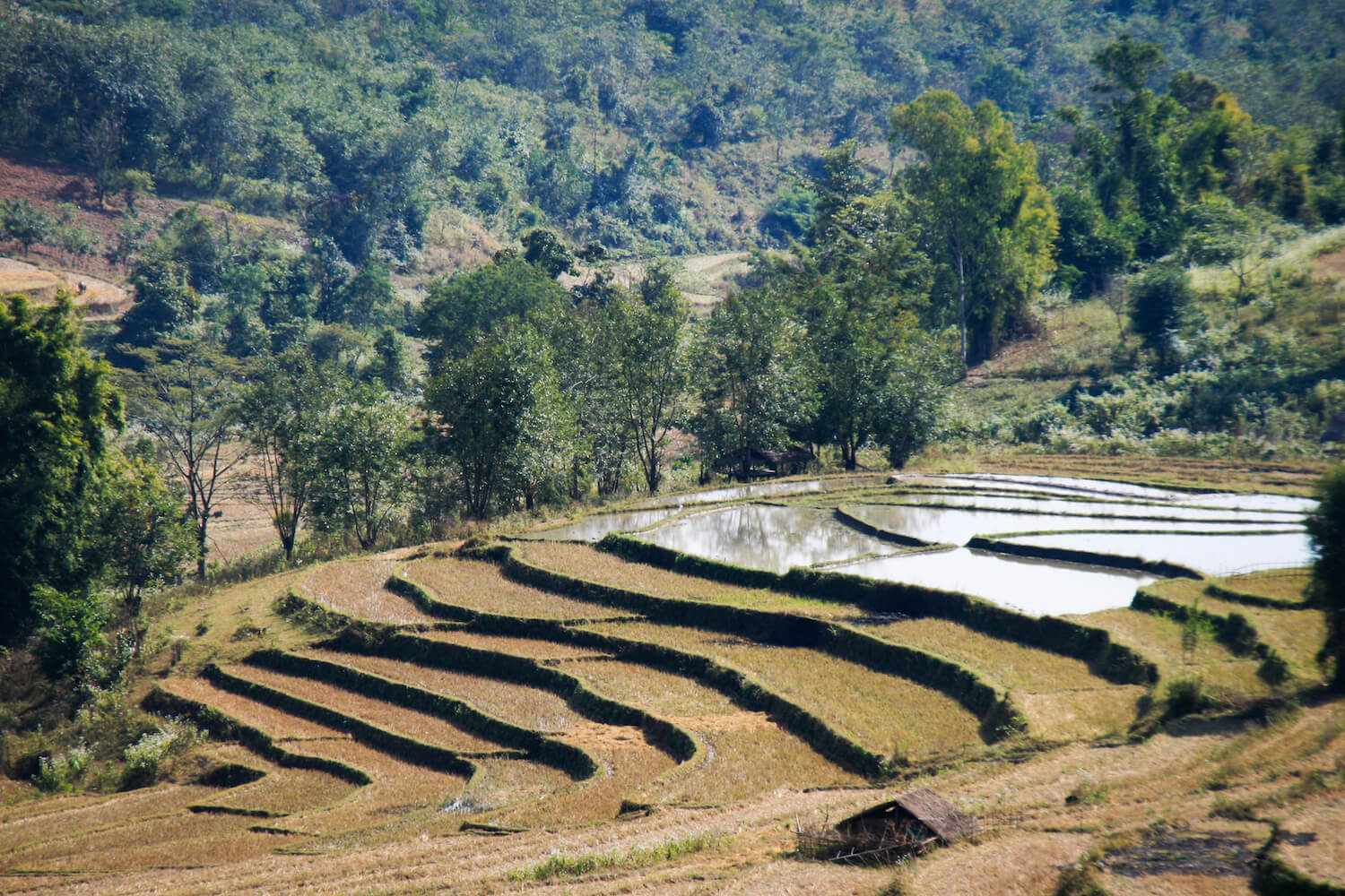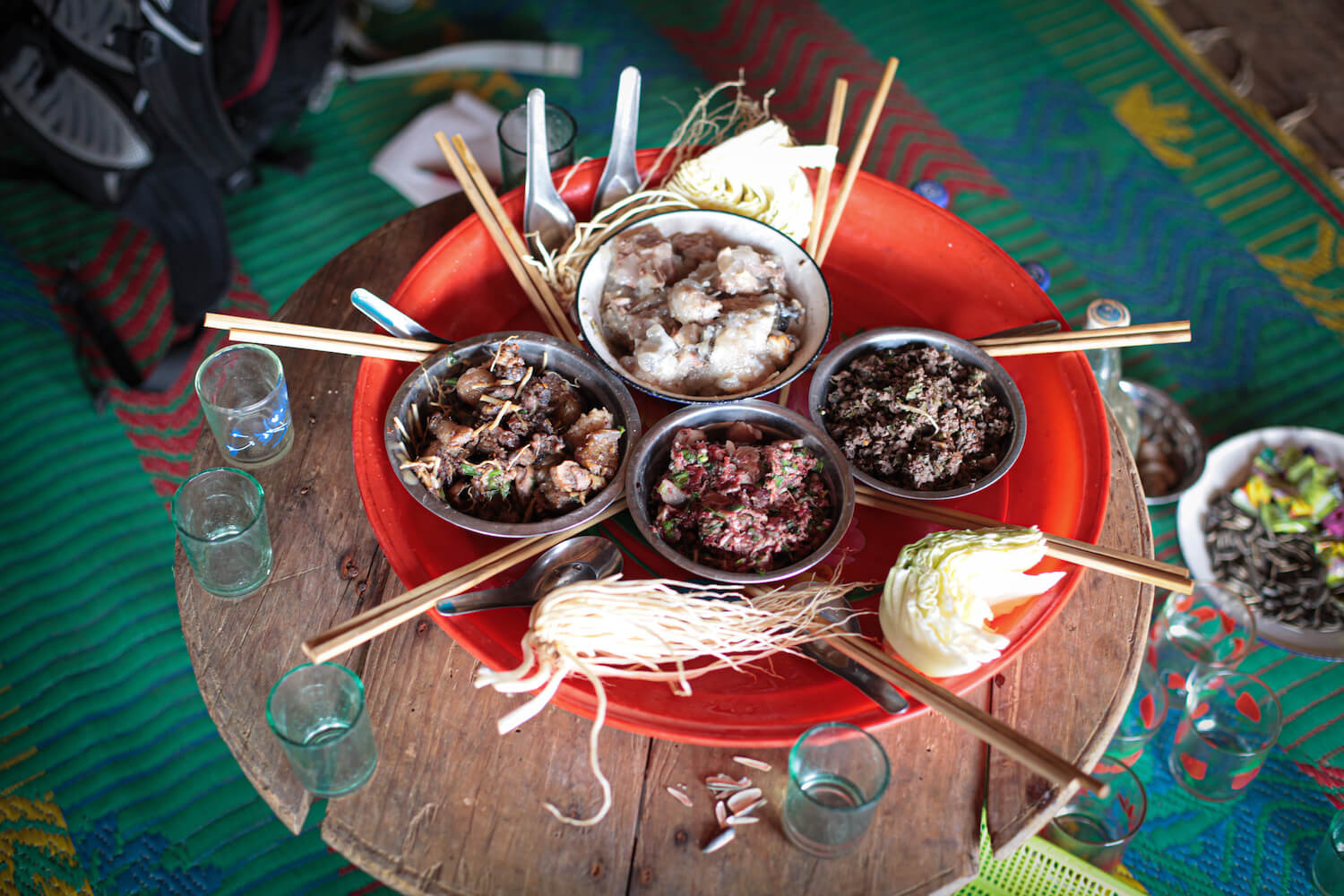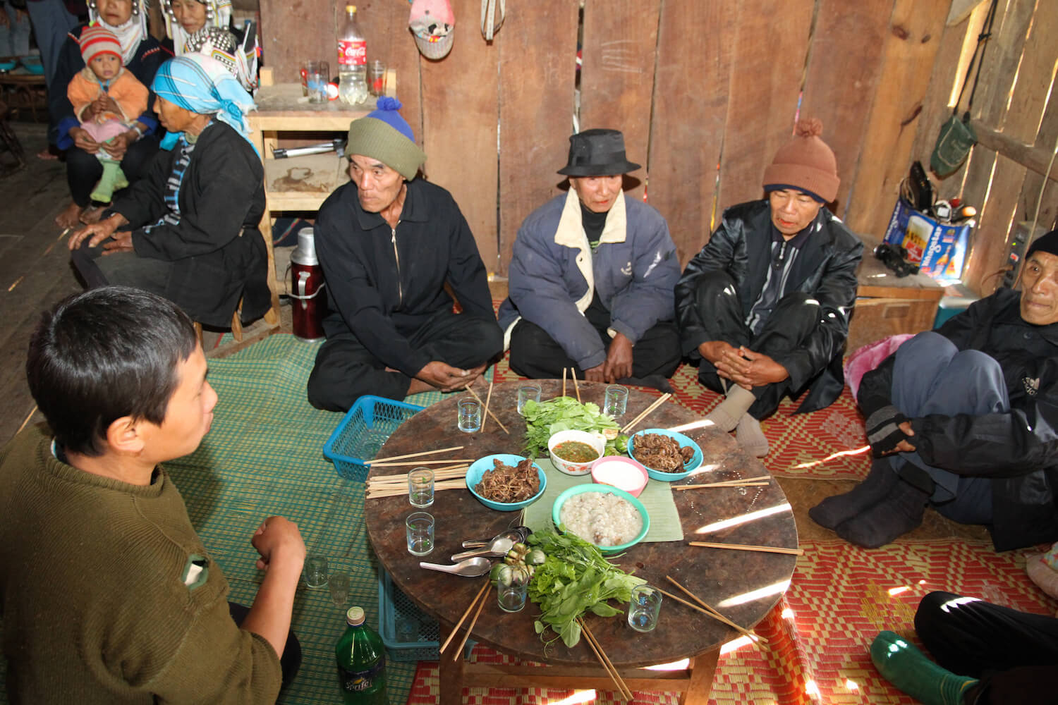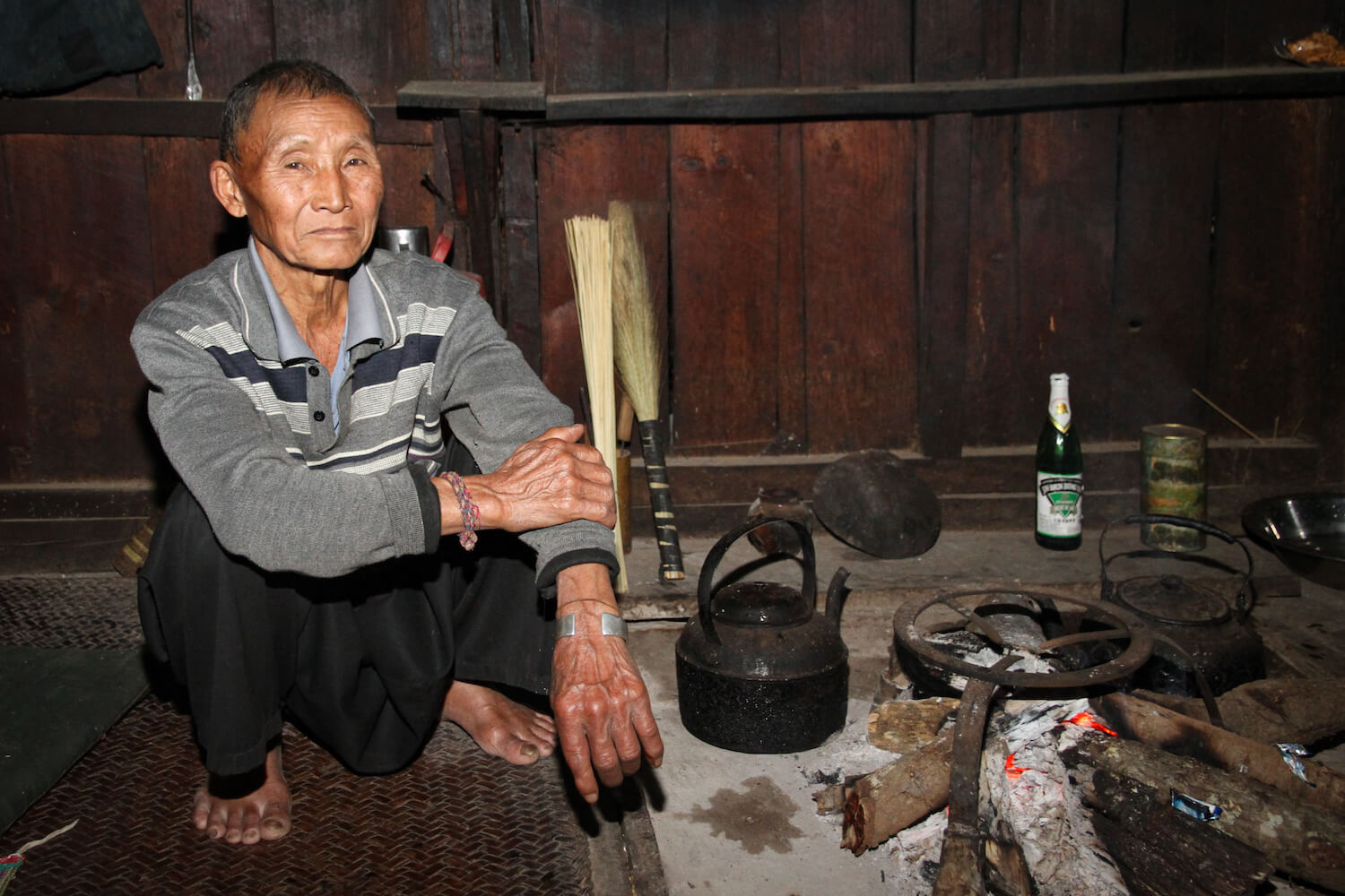 S lidmi Akha se potkáváme ve východní Barmě v oblasti Kengtungu. Postupně navštěvujeme tři vesnice: Wanping, Wanla a Fa Kuo. Procházíme vstupní branou a stáváme se středem pozornosti. Zrovna probíhají oslavy, tak všichni pijí a hodují od ranních hodin. Nemine to ani nás. Těžko hledáme argumenty, proč musíme odmítnout a brzy už mezi námi koluje místní rýžová pálenka. Zvou na ke stolu a dáváme si rýži a vepřové maso na mnoho způsobů. Potom nás vedou do domu, který má dvě části. V mužské sekci se seznamujeme s bratrem starosty a ve vedlejší místnosti nás vítá jeho manželka. Ochutnáváme uzené veverky a jdeme k dalšímu domku.