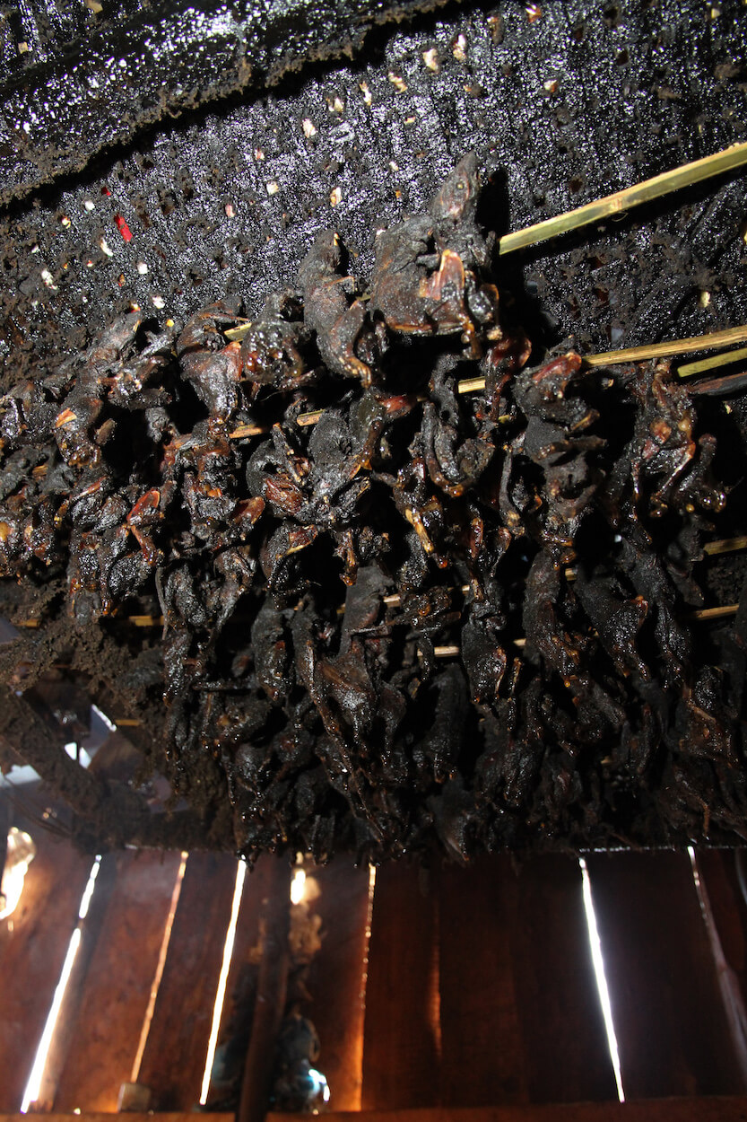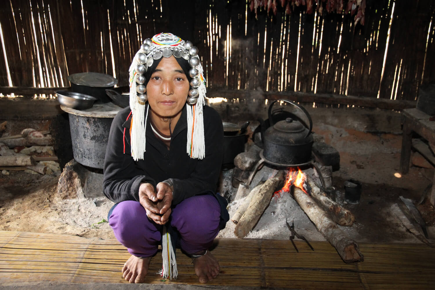Ženy si hrdě dávají na hlavu krásné zdobené čepce. Stříbrné koule, historické mince a pruhy korálků. Toto je sváteční pokrývka hlavy. Nesmíme se jí dotknout, to by přineslo ženě neštěstí. Procházíme s vesničany osadou a všímáme si vyřezávaných samopalů. Zlé síly prý v dnešních dnech ovládají okolí a nemohou se jich zbavit. Obětují zvířata a volají duchy předků, aby jim pomohli…