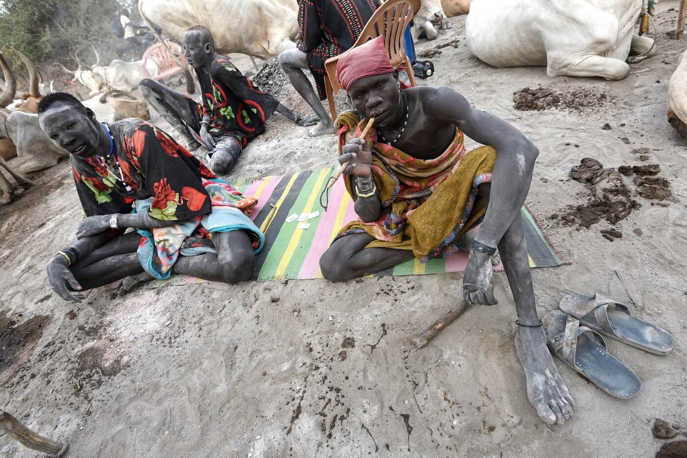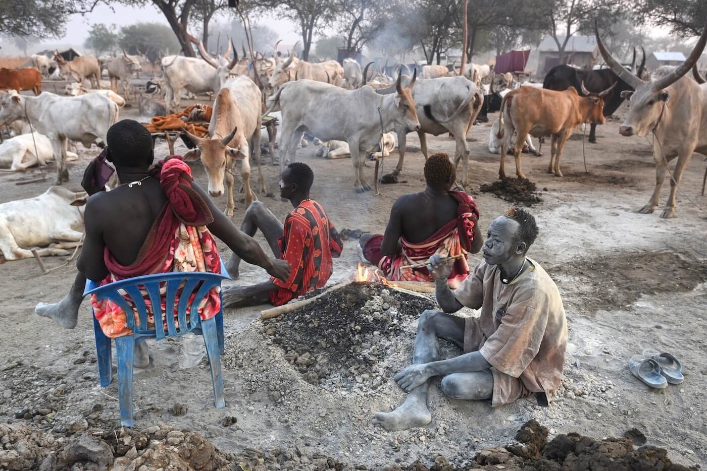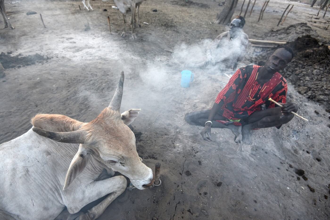 Cattle campy kmene Mundari představují srdce celé jejich společnosti. Fungují jako sezónní pastevecké tábory budované především v období sucha poblíž Bílého Nilu či dalších vodních zdrojů. V jednom táboře může být soustředěno stovky a někdy i tisíce kusů dlouhorohého skotu Ankole, známého také jako Watusi, což vytváří mimořádně silný sociální fenomén. Menší tábory bývají tvořeny ohradami z trnitých keřů, do nichž je skot na noc zaháněn. Na větších otevřených prostranstvích jsou krávy přivazovány ke kůlům. Pastevci tráví se svými stády většinu času. V noci je hlídají a spí kolem zapálených ohňů. Ty jsou neustále udržovány a rozdělávány ze sušeného kravského trusu, který produkuje hustý kouř chránící zvířata před hmyzem a parazity. Popel slouží jako dezinfekce i ochranný nátěr těla a dává mužům jejich typický šedobílý vzhled. Součástí hygieny je také omývání těla kravskou močí, která díky obsahu amoniaku působí antisepticky a pomáhá chránit pokožku před infekcemi i hmyzem.