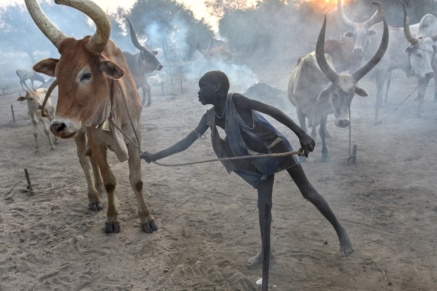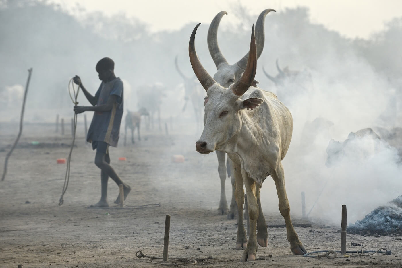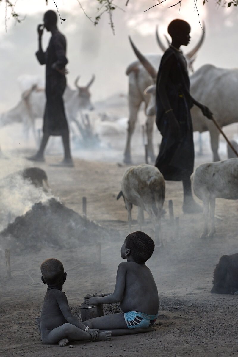 Cattle campy kmene Mundari představují srdce celé jejich společnosti. Fungují jako sezónní pastevecké tábory budované především v období sucha poblíž Bílého Nilu či dalších vodních zdrojů. V jednom táboře může být soustředěno stovky a někdy i tisíce kusů dlouhorohého skotu Ankole, známého také jako Watusi, což vytváří mimořádně silný sociální fenomén. Menší tábory bývají tvořeny ohradami z trnitých keřů, do nichž je skot na noc zaháněn. Na větších otevřených prostranstvích jsou krávy přivazovány ke kůlům. Pastevci tráví se svými stády většinu času. V noci je hlídají a spí kolem zapálených ohňů. Ty jsou neustále udržovány a rozdělávány ze sušeného kravského trusu, který produkuje hustý kouř chránící zvířata před hmyzem a parazity. Popel slouží jako dezinfekce i ochranný nátěr těla a dává mužům jejich typický šedobílý vzhled. Součástí hygieny je také omývání těla kravskou močí, která díky obsahu amoniaku působí antisepticky a pomáhá chránit pokožku před infekcemi i hmyzem.